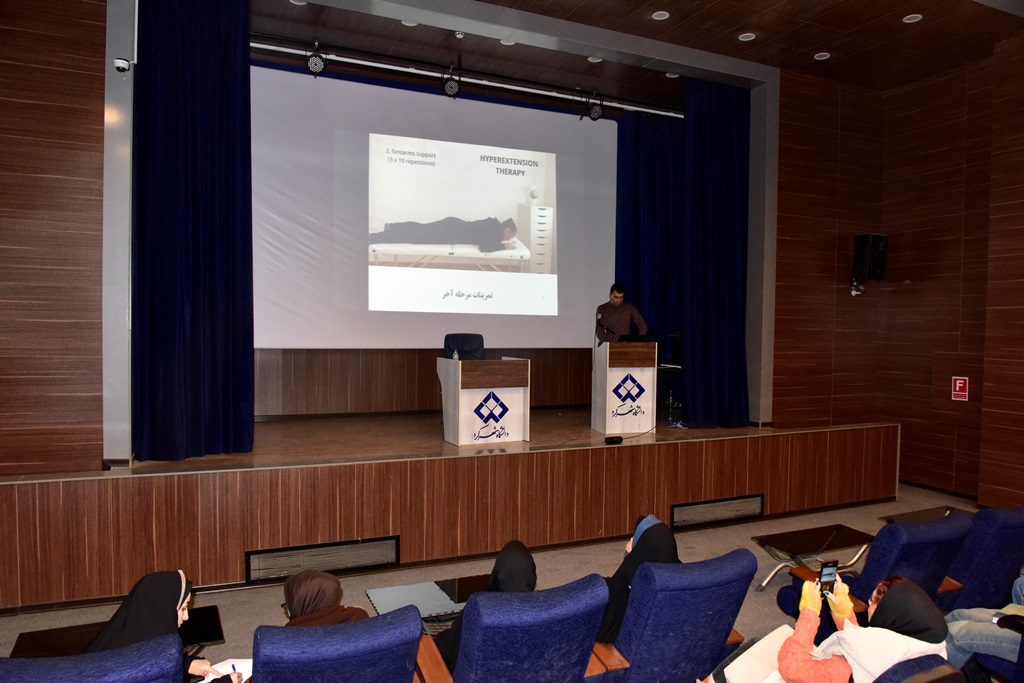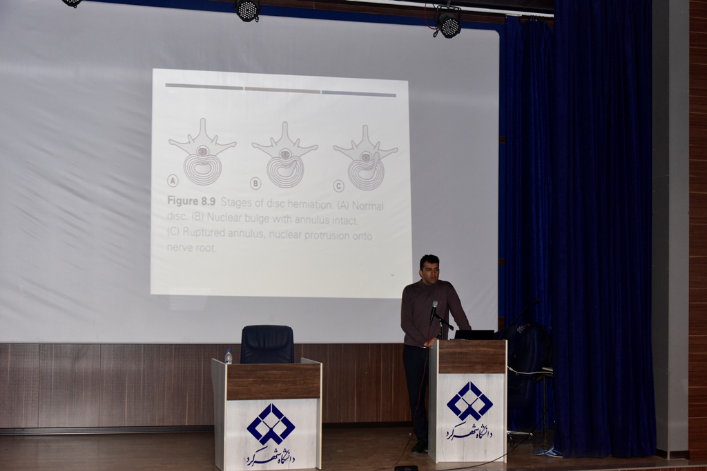 دکتر سجاد باقریان در این کارگاه به ارائه آموزش آناتومی و مکانیک بدن مرتبط با سیستم اسکلتی-عضلانی، شناسایی عوامل خطرزای ایجاد کننده دردهای عضلانی-اسکلتی، درک رابطه بین سبک زندگی، محیط کار و سلامت سیستم حرکتی پرداخت .