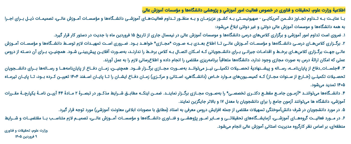 اطلاعیه شماره۳ مرحله ثبت نام حضوری تکمیل ظرفیت آزمون سراسری ۱۴۰۴