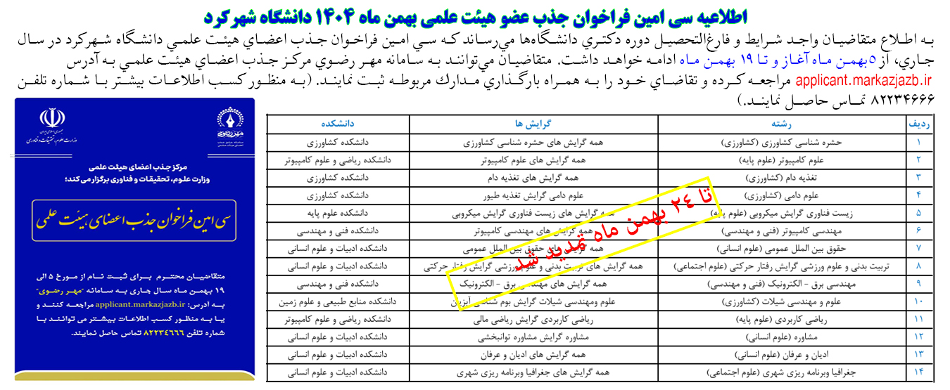 دومین فراخوان جذب مدرس حق التدریس