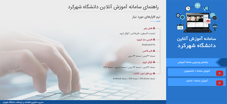 سایت آموزش الکترونیک دانشگاه شهرکرد  به منظور ارائه  کلیه اطلاعات لازم و ویدیو های آموزشی برای استفاده از کلاس های آنلاین توسط فناوری اطلاعات دانشگاه طراحی  و رونمایی شده است.
