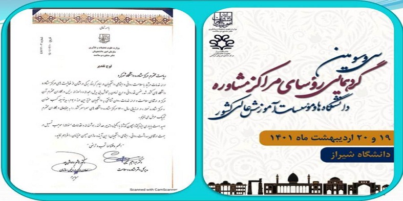 سی و سومین گردهمایی رؤسای مراکز مشاوره به میزبانی مرکز مشاوره دانشگاه شیراز در روزهای دوشنبه و سه شنبه ۱۹ و ۲۰ اردیبهشت ماه سال جاری با حضور 130 دانشگاه برگزار شد.
