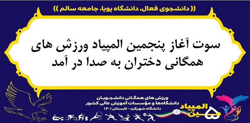 افتتاحیه پنجمین المپیاد ورزش های همگانی دانشجویان دختر دانشگاه ها و موسسات آموزش عالی کشور، روز شنبه 29 مردادماه 1401، ساعت 17 در مجموعه ورزشی شهدای دانش آموز برگزار خواهد شد.