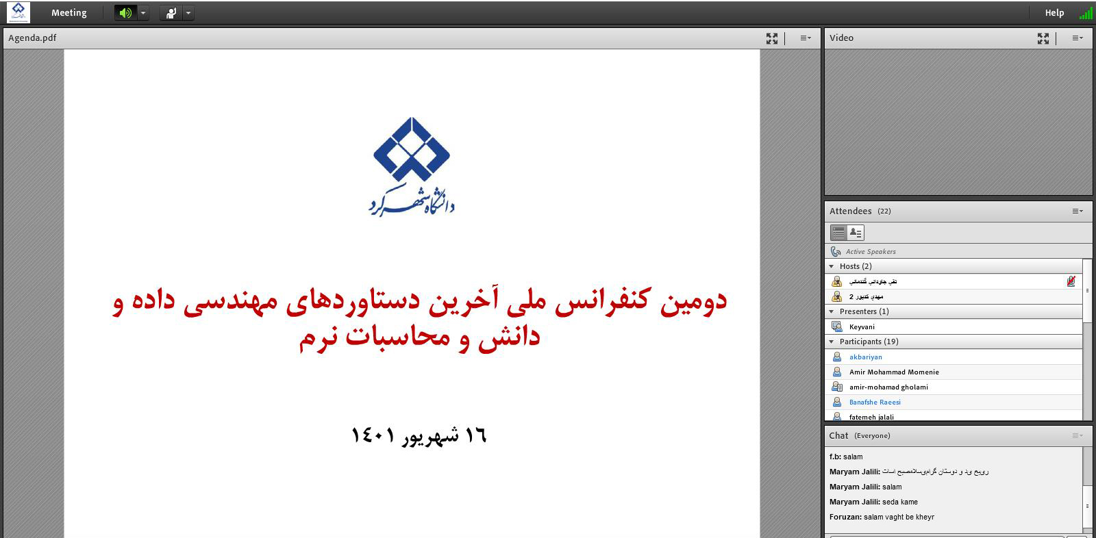 به گزارش روابط عمومی دانشگاه شهرکرد، روز چهارشنبه 16 شهریورماه 1401، دومین کنفرانس ملی آخرین دستاورد های مهندسی داده و دانش و محاسبات نرم، با حضور دکتر احمد کیوانی، معاون پژوهش و فناوری دانشگاه شهرکرد، دکتر تقی جاودانی دبیر اجرایی کنفرانس، دکتر مهدی کدیور دبیر علمی کنفرانس و جمعی ازمحققین و اساتید  دانشگاه های داخلی و خارجی به صورت غیر حضوری به میزبانی دانشگاه شهرکرد برگزار شد.